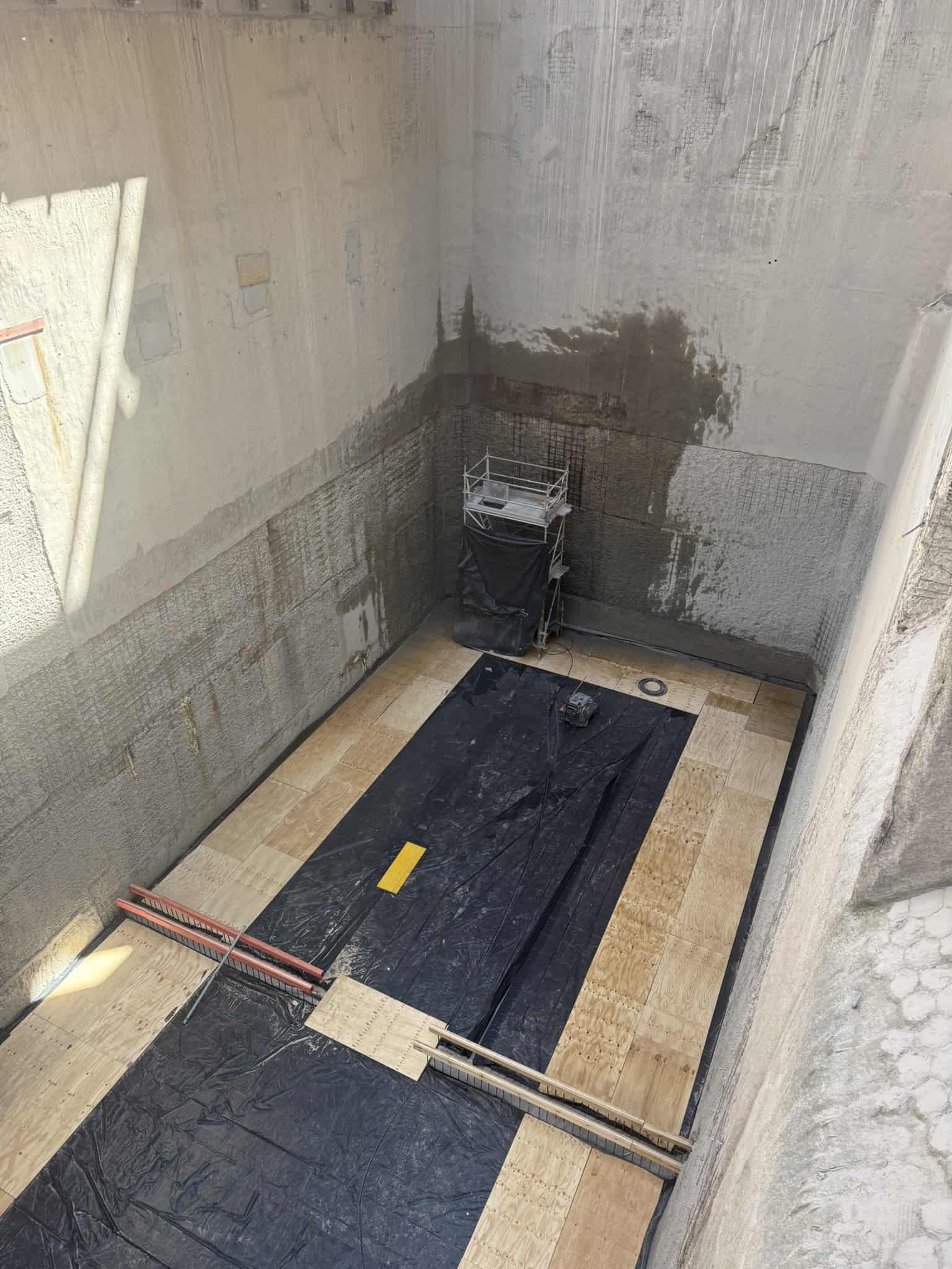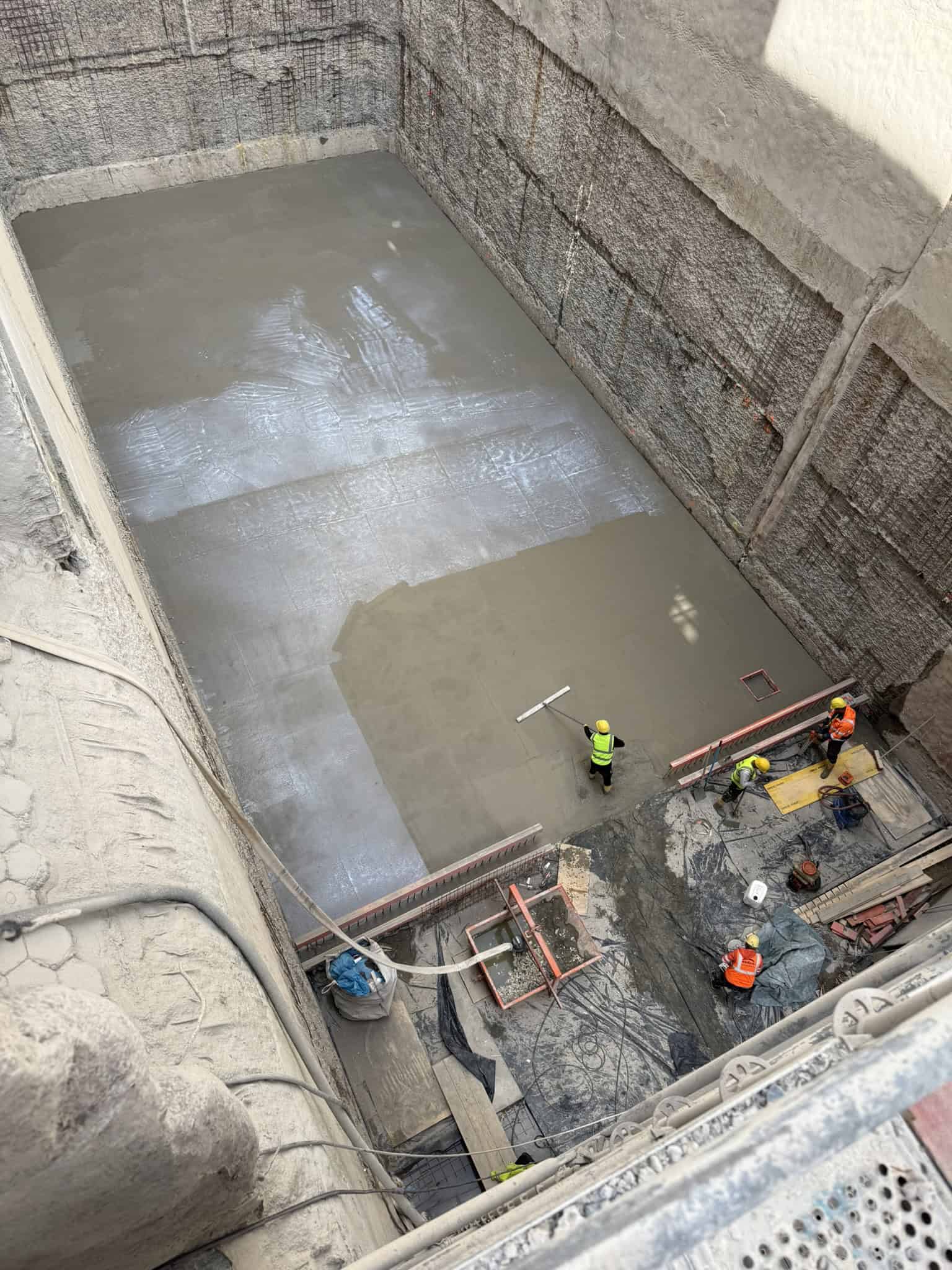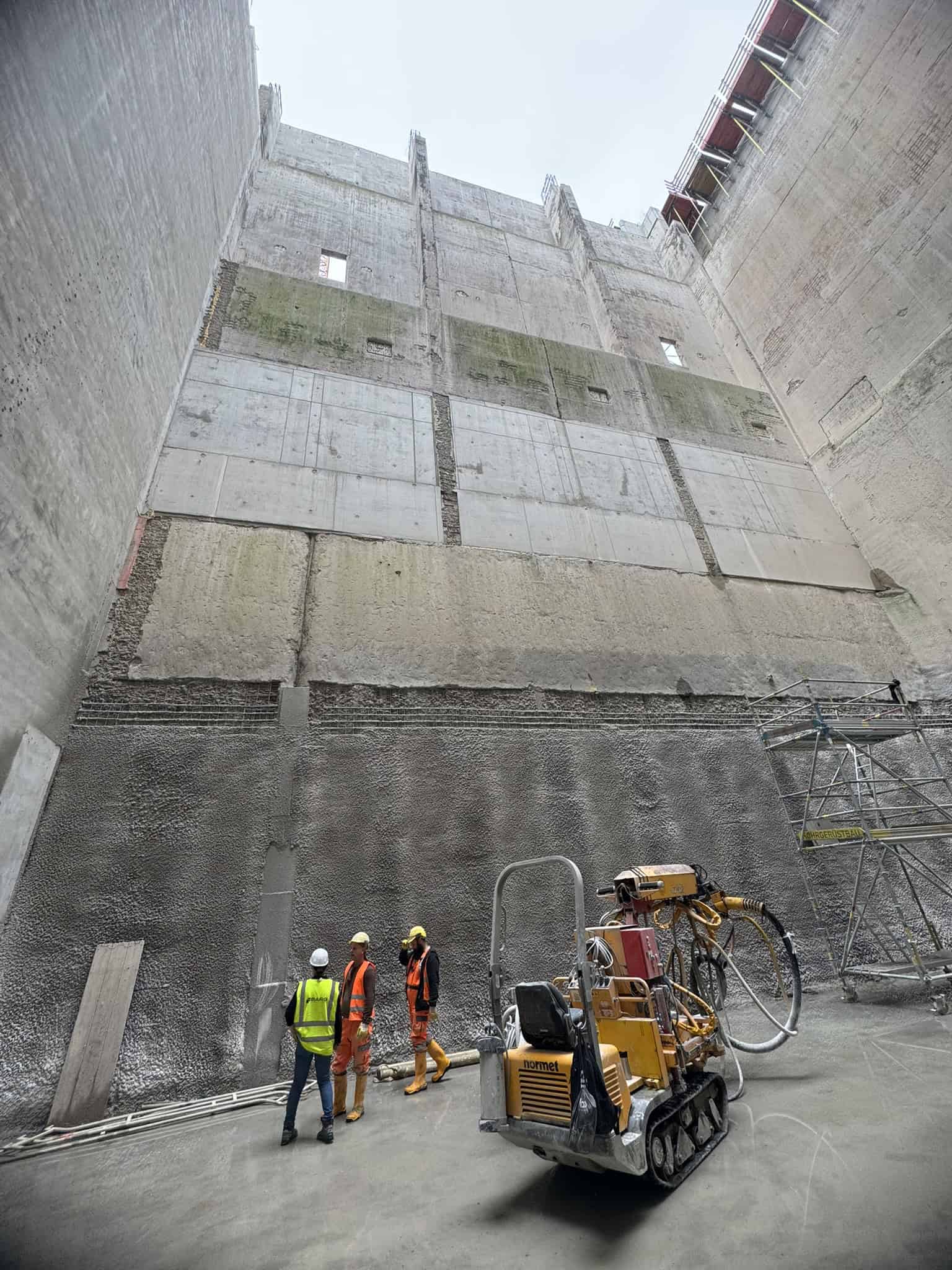 - ca. 80 m³ Spritzbeton im Nassspitzverfahren an Wänden